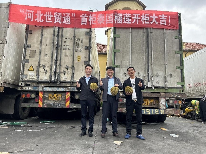 河北省世貿(mào)通進(jìn)出口服務(wù)有限公司“首柜”泰國進(jìn)口榴蓮抵達(dá)高碑店市場